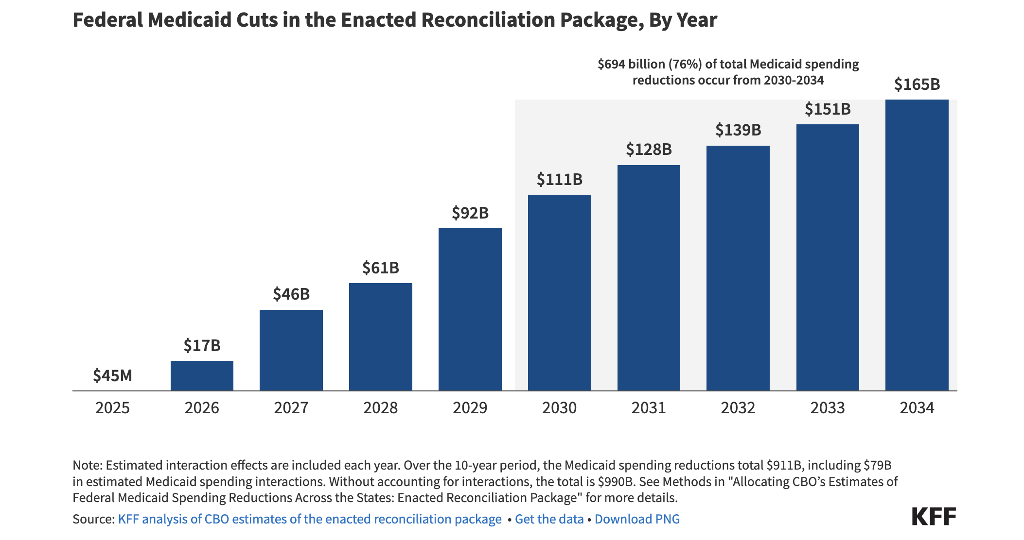 Here is a graph of how much money will be taken away from Medicaid each year:
