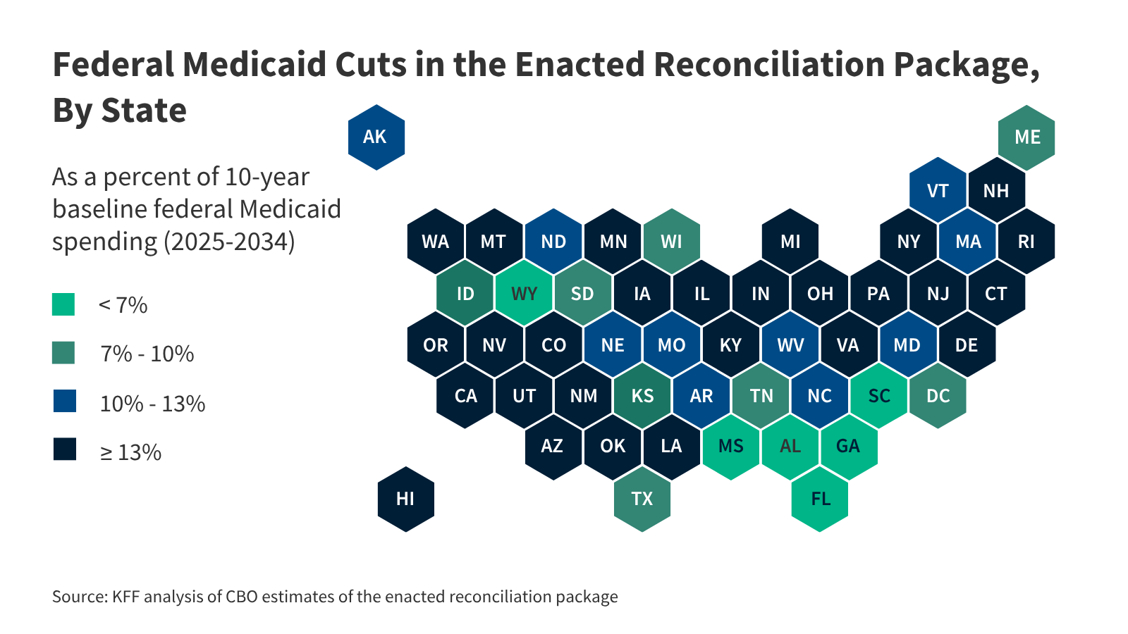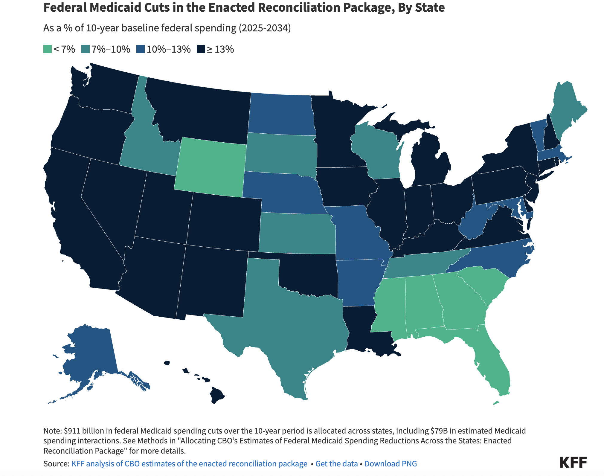 Here is a picture of which states will lose the most Medicaid money. Black and blue states will lose the most money.
