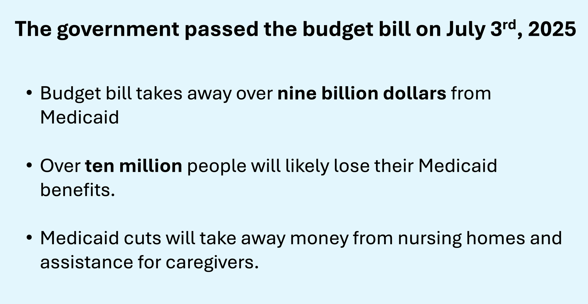 Budget Bill takes away money from Medicaid: Caregivers will lose support
